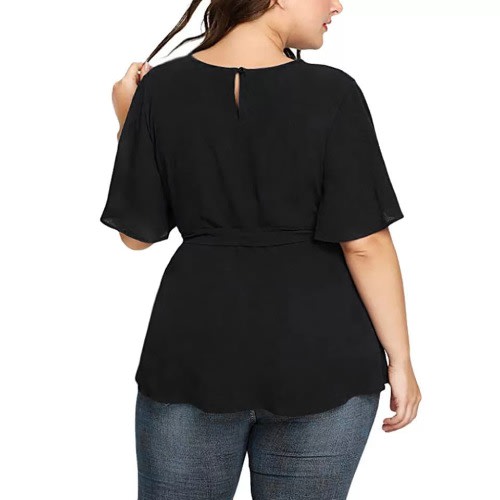 Buy Women's Short Sleeve Belted Blouse - Black in Nigeria