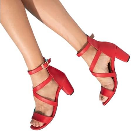 Buy Women's Square Heel Sandals -Red in Nigeria