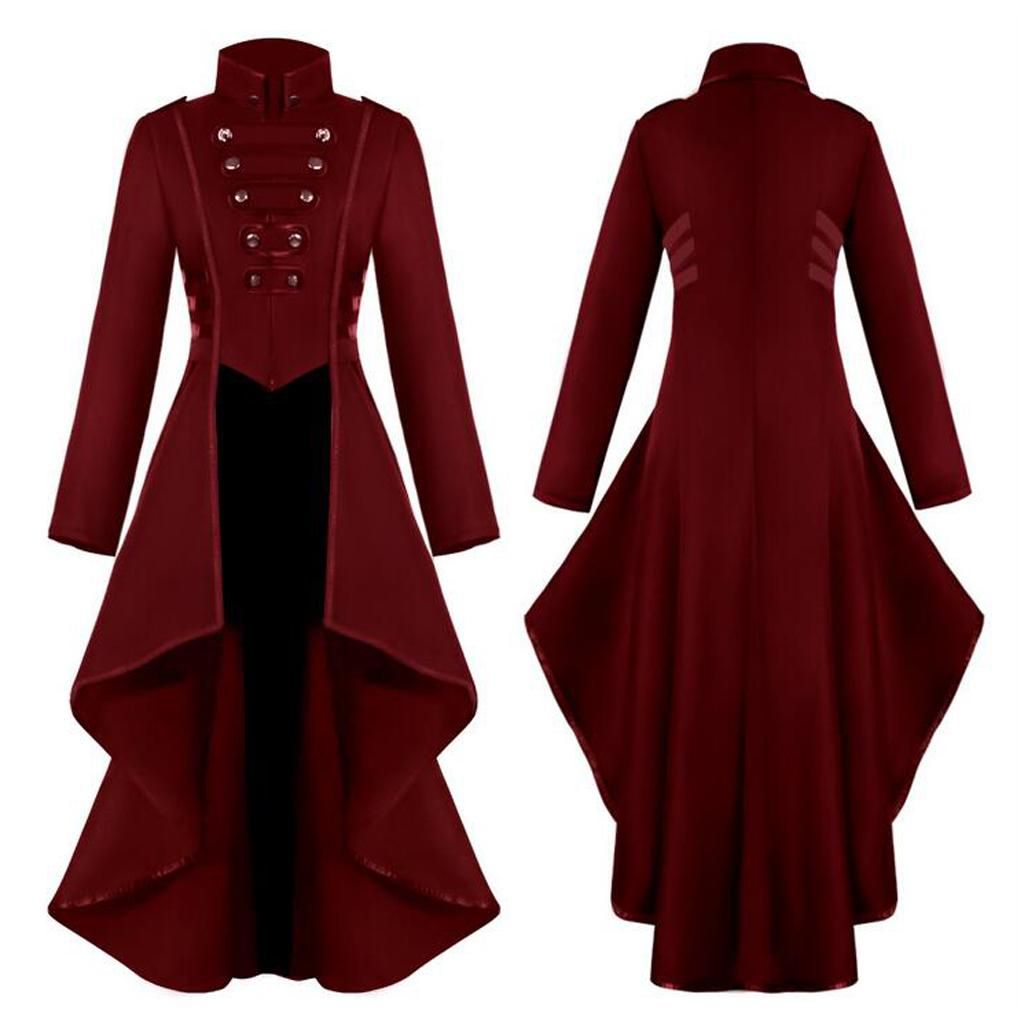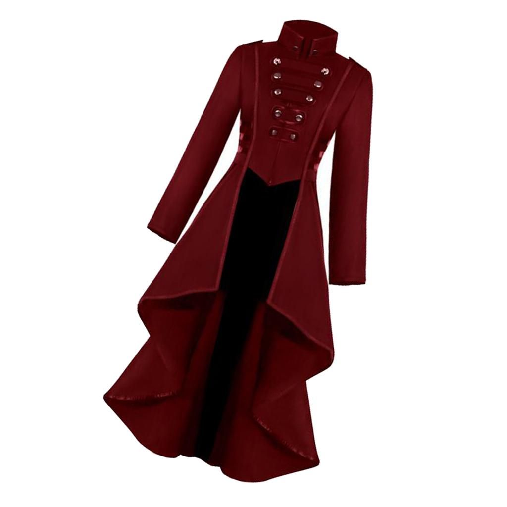 Steampunk medieval tailcoat, full of the vintage style, show women's elegance and beautyMade of high quality polyester material, breathable, soft and comfortableDesign with long sleeve, stand collar, zipper clourse button front, irregular hem swallow tail jacketExcellent workmanship, bring a fashionable touch to your look and will definitely suit all styles and seasonsSuitable for steampunk-themed & rock party, Halloween costume, cosplay, nightclub fashion show, casual, wedding, renaissance, pirate, colonial costume fancy dress up, etc.