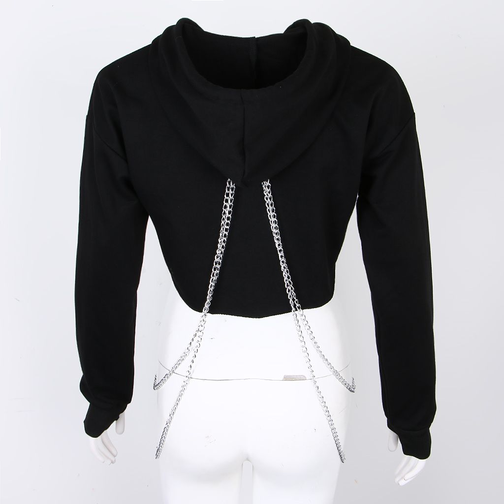 Material: cotton and alloy chainlightweight and comfortable.Features: pullover, Long Sleeve, solid, crop top.Suitable for all occasions. It's comfortable to wear in all seasons.Chain Length: 64cm/ 25.2in