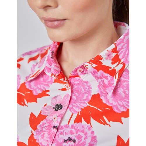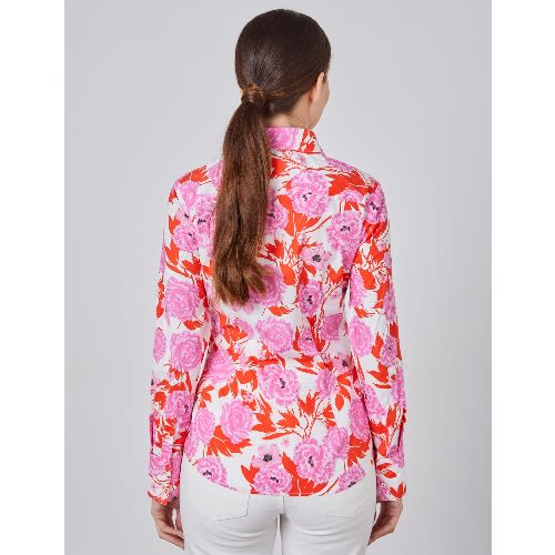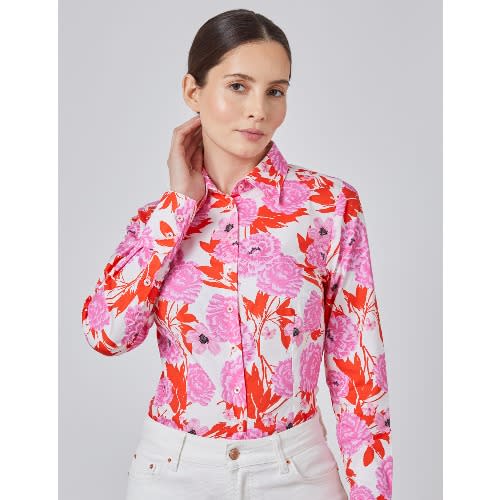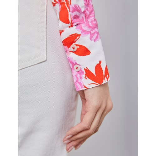 Buy Women's Tropical Roses Floral Print Fitted Shirt - White & Pink in Nigeria