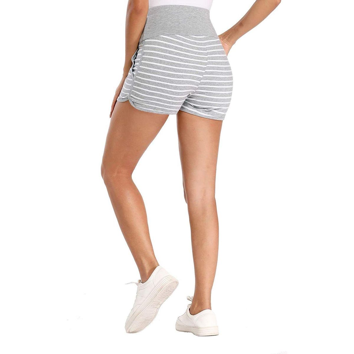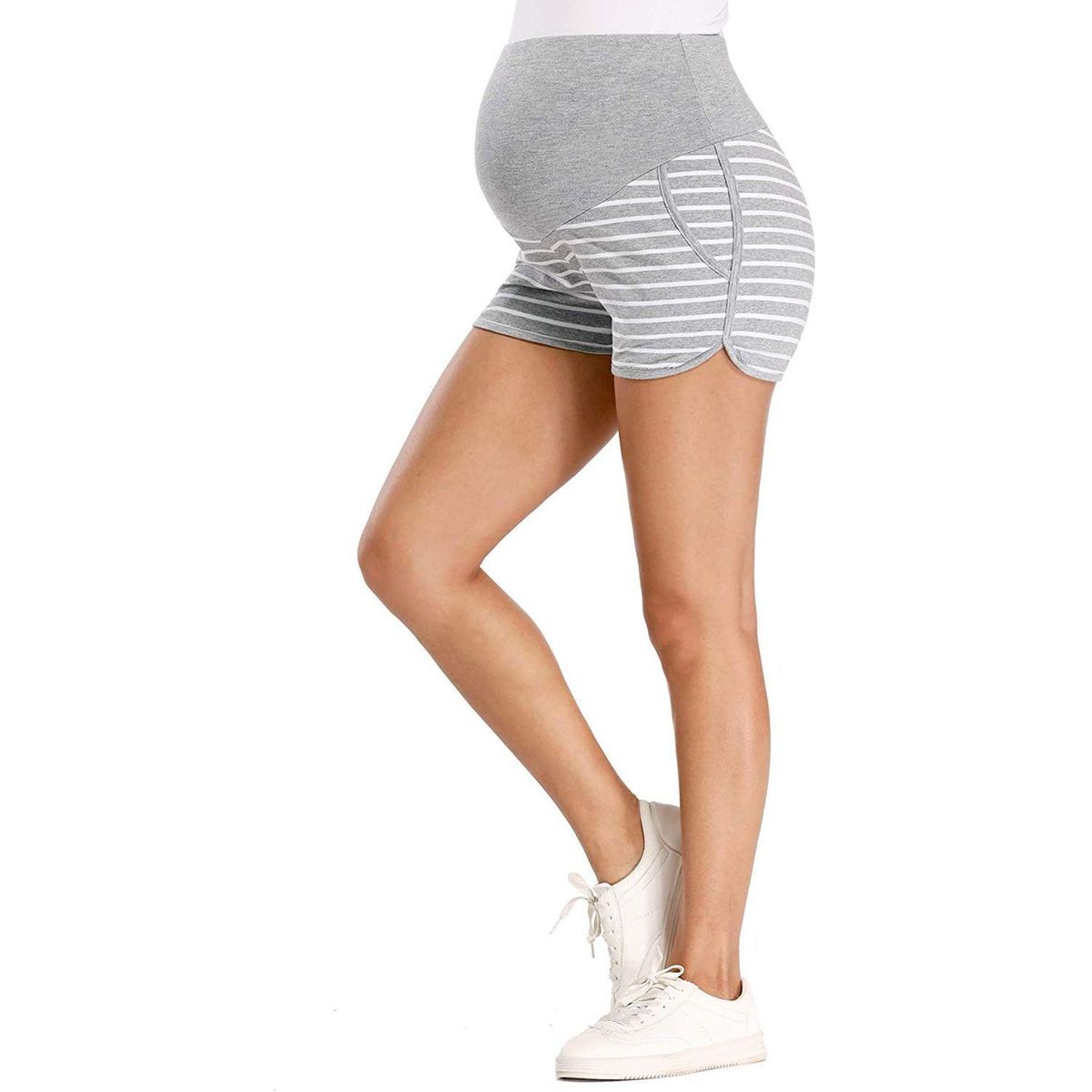 Womens Shorts Striped Loose Maternity Stretchy High Waist Shorts Pants Pregnancy Pocket Loose Hot Pants Summer Beach Shorts