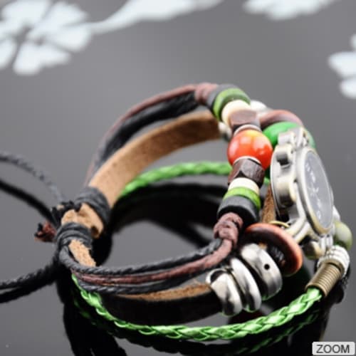 Genuine Cow Leather Bracelet Wristwatch - Green