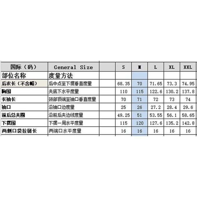 XXL: Shoulder:48cm/18.9"---Sleeve:60cm/23.6"---Chest:134cm/52.8"---Front Length:70cm/27.6"---Back Medium Length:68cm/26.8"