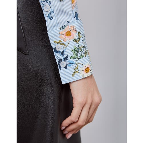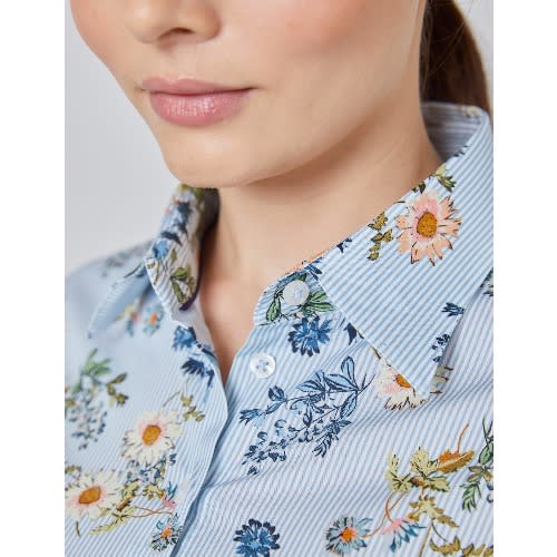 Buy Women's White & Blue Daisy Bunches Floral Print Fitted Shirt in Nigeria