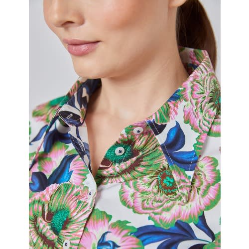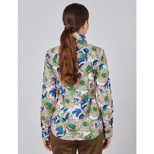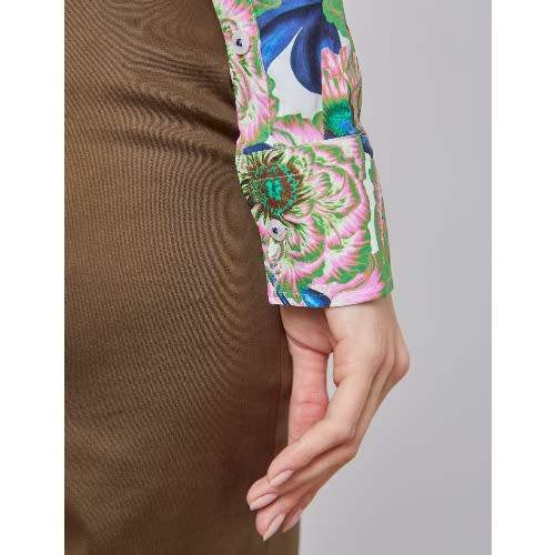 Buy Women's White & Pink Vintage Floral Fitted Shirt - Single Cuff in Nigeria