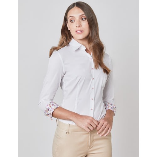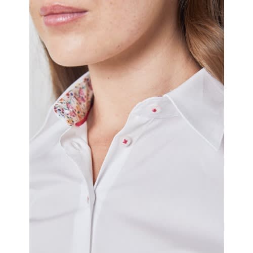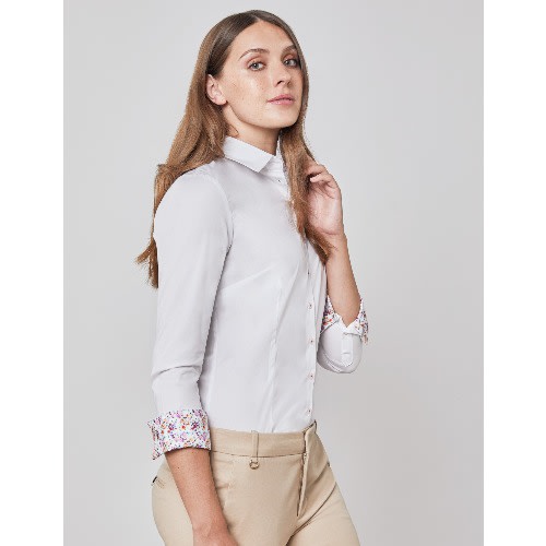 Buy Women's White Poplin Fitted Shirt With Floral Contrast in Nigeria