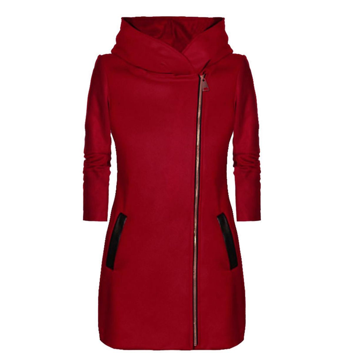 Mid-length coat with a stylish side zipper design, easy to match. Relaxed fit design. You can choose a larger size for loose fit.