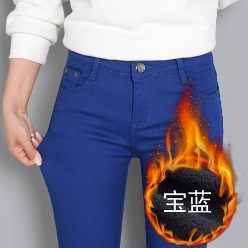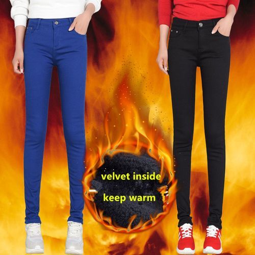 1X Women's Winter Warm Velvet Thickened Jeans Women High Waist Skinny Legging Pocket Fleece Lined Thermal Denim Pencil Pants Woman