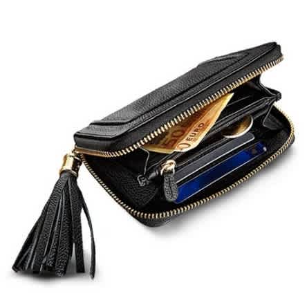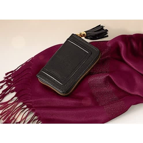 Buy Women's Zippered Wallet With Tassel, Black & Gold Trimmings in Nigeria