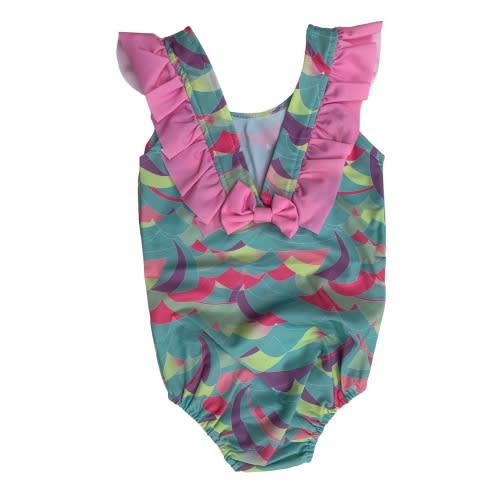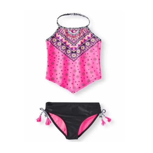 We make clothes that let kids be kids. These one-of-a-kind styles that can tumble on the playground, twirl at family pool parties and stick around long enough to be handed down. This is a very cute girl's two-piece swimwear with a lovely print and pink ruffle details, will be a very perfect number for that pool party. Keep her looking cute with this 2-piece swimsuit. size M best for 4-5yrs,L good for 5-6yrs,size XL right for 6-7yrs,XXL best for 7-8yrs and XXXL just right for 8-9yrs.
