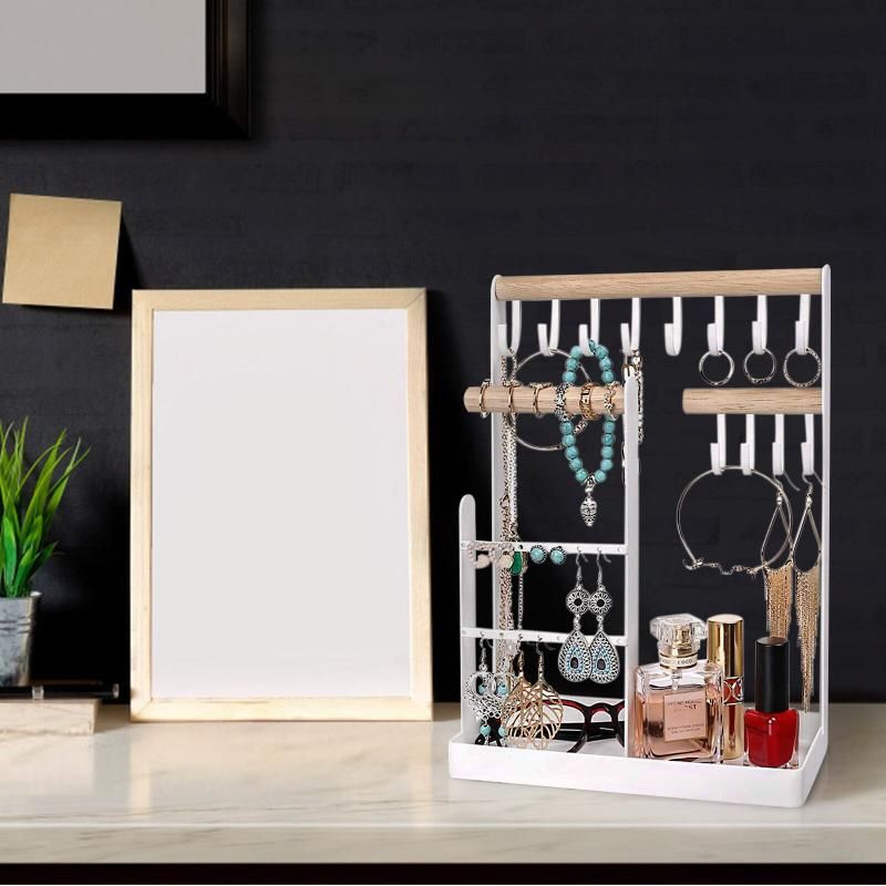 Wood and Iron Jewelry Organizer Stand Holder Display