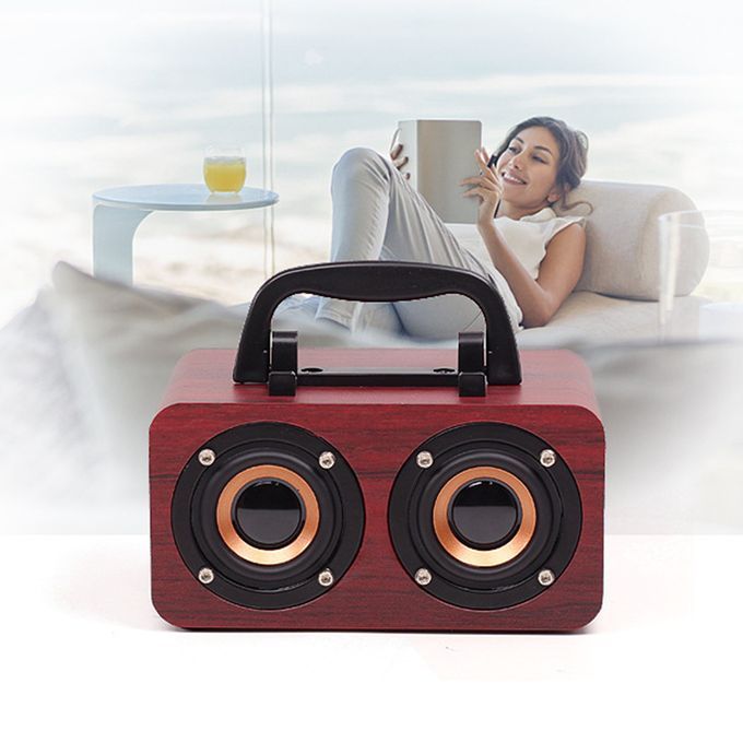 Designed with handle for portable carrying, and phone holder at the top of the speaker is convenient for watching video