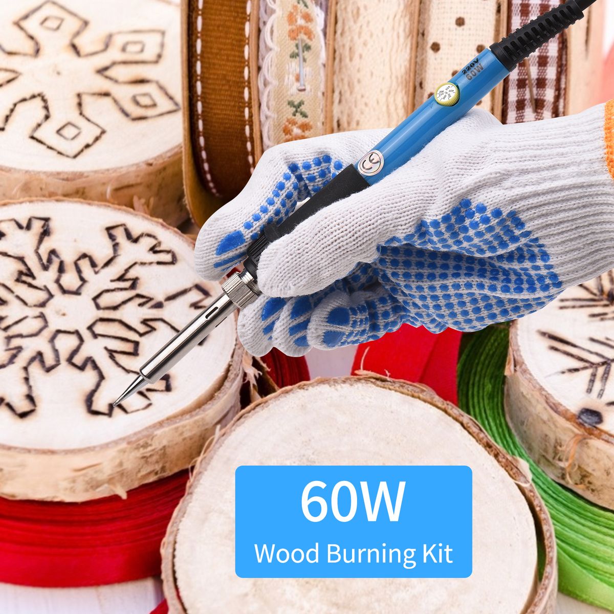 ✒ Adjustable Temperature amp; Quick Heating: The pyrography pen temperature can be adjusted from 200 to 450℃. 60W heated ceramic technology quickly heats wood burning kit in 15 seconds, saving energy and environmental protection.