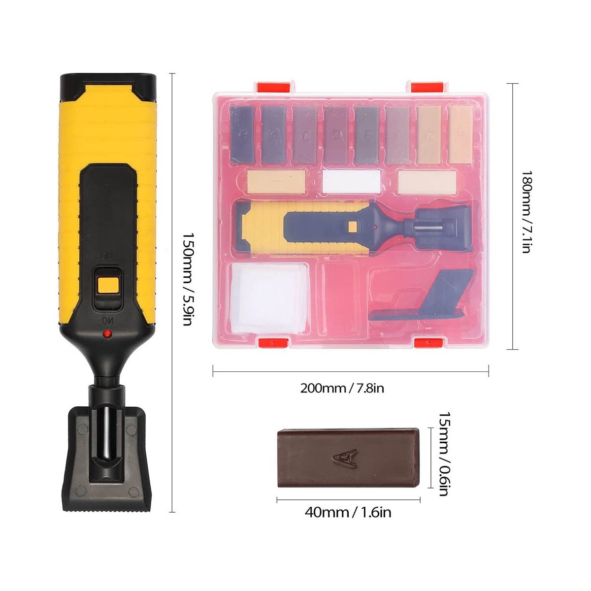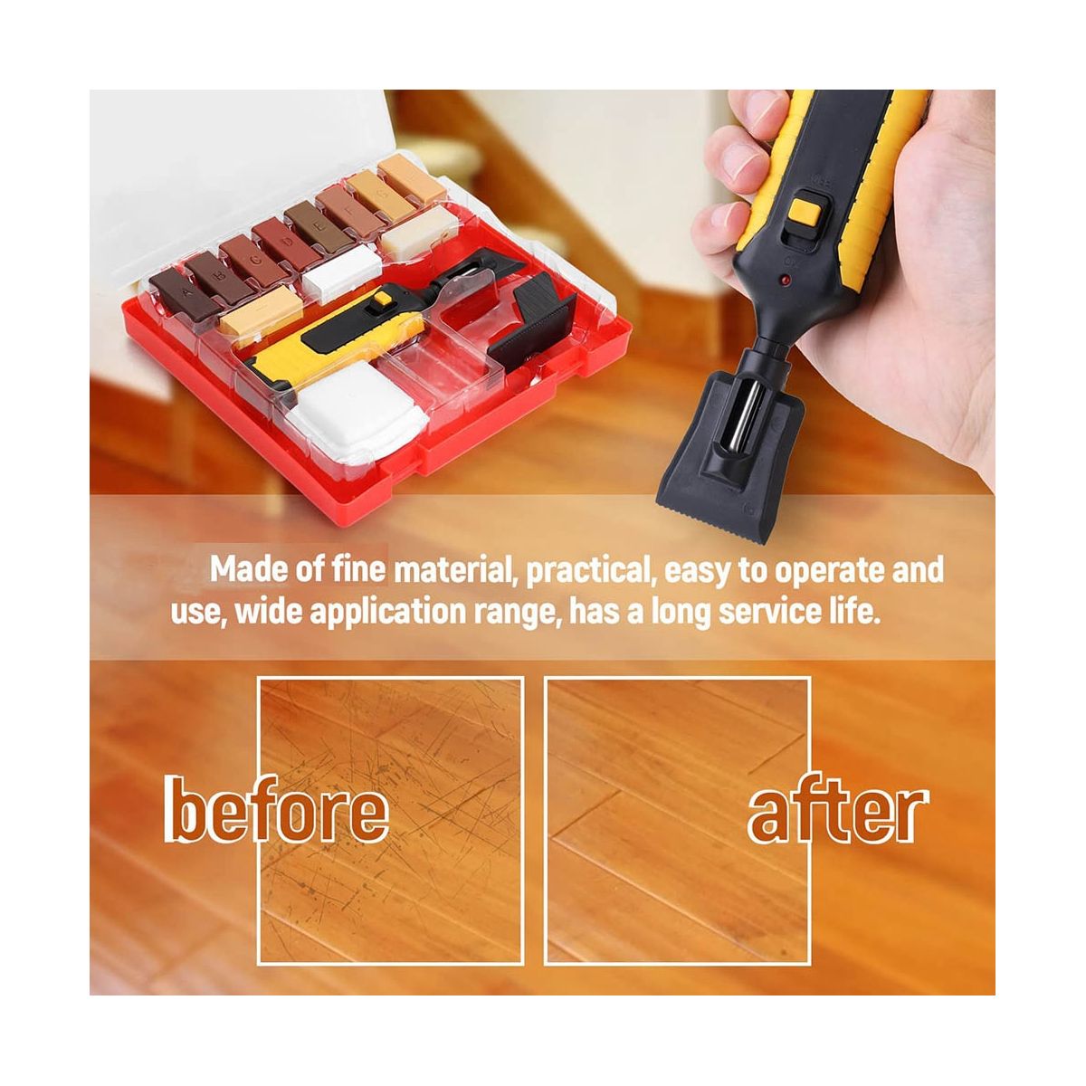 Light scratch or damage can be effortlessly repaired. Easy to use filler sticks. Simply recreate the color of your damaged boards by mixing the 11 wax blocks.