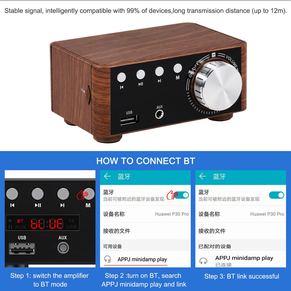 The power amplifier can connect mobile phone, computer, tablet, notebook, MP3, TV and projector with AV audio (Lotus socket) or 3.5mm headphone output hole. Various mainstream BT devices on the market can be linked to achieve wireless transmission.