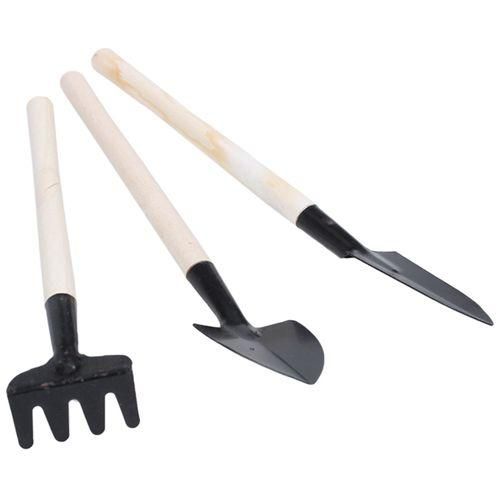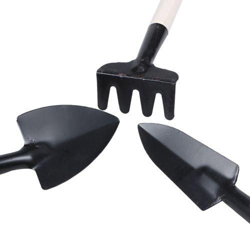 The Garden Tools Set are made from metal and wood material, including 1pc rake, 1pc shovel, 1pc digging trowel.
