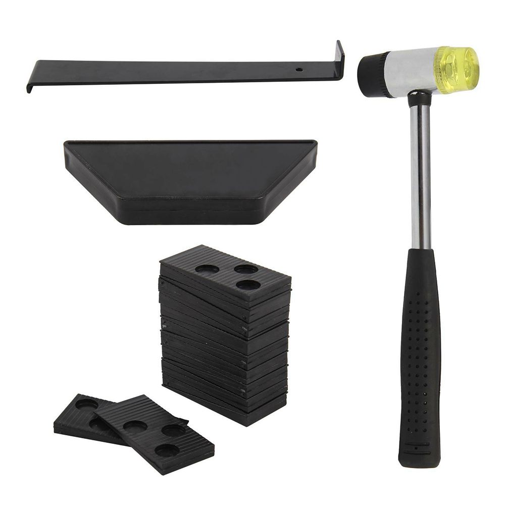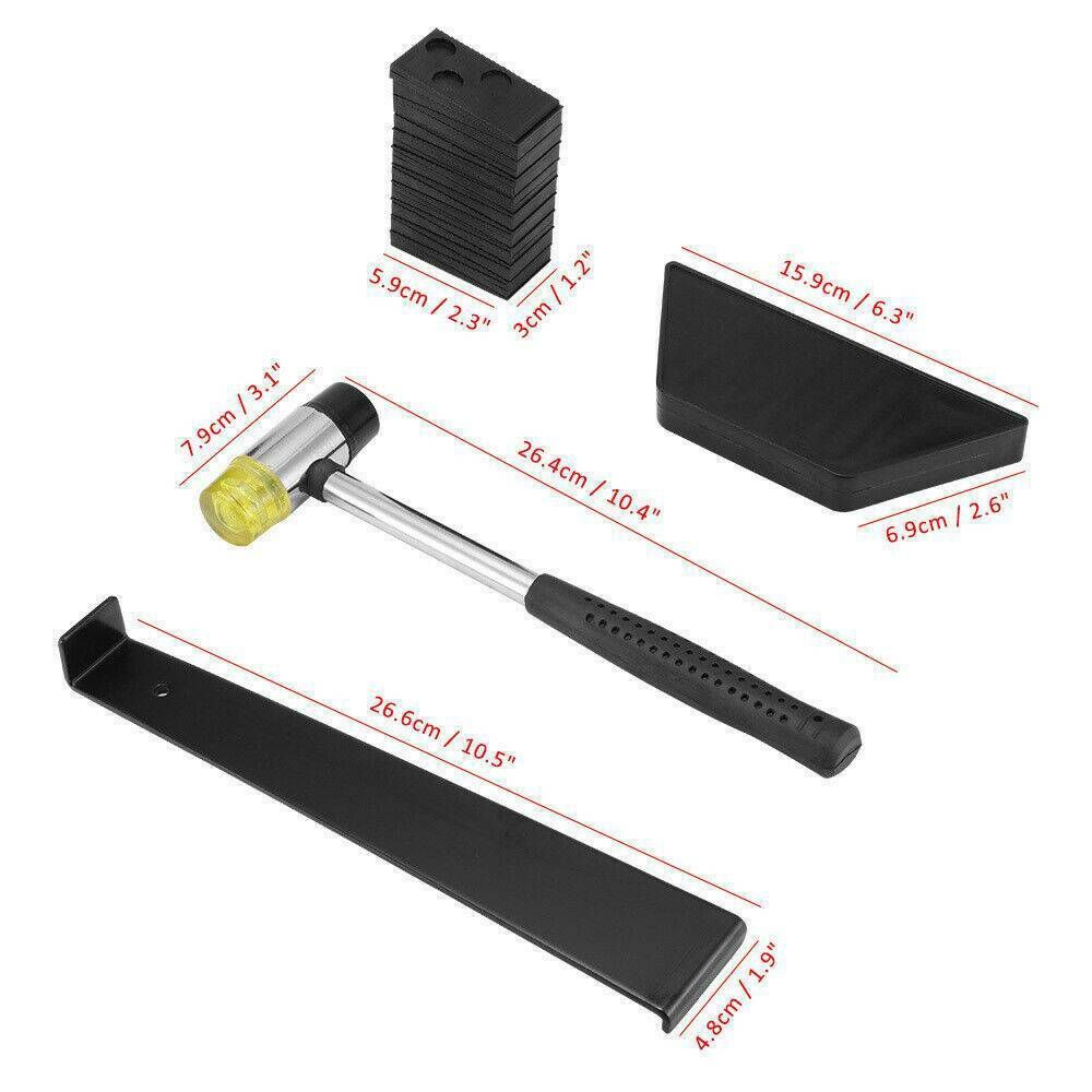 The product is a full kit tool of installing wood floor, manual operation, lightweight, simple and safe to use by yourself. 20pcs trapezoidal gasket, high quality, anti-slip do not hurt wood floor surface.