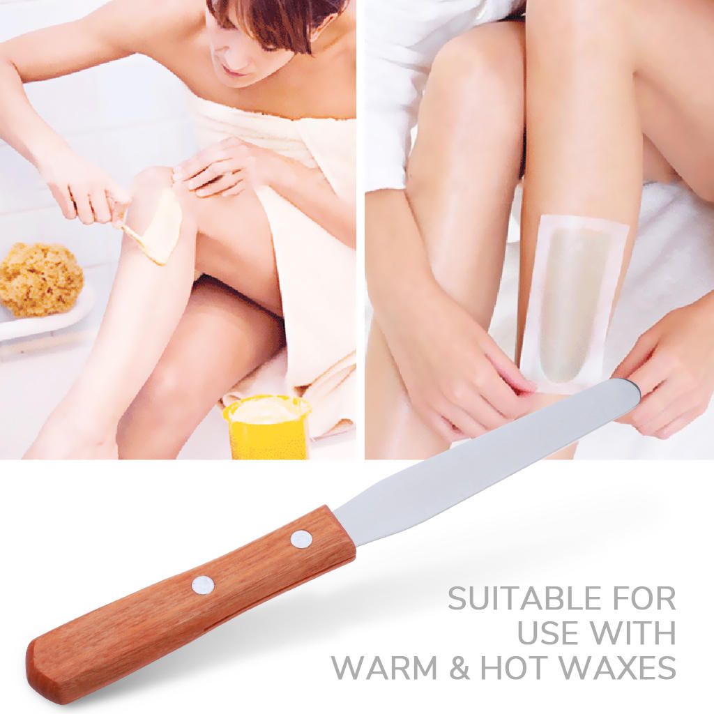 Professional high quality stainless steel waxing spatulas with an easy to grip wooden handle.
