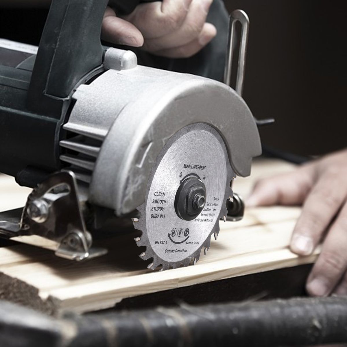 Features:Made of premium alloy steel material with hardened and sharper tungsten carbide teeth, the cutting disc is high quality, sturdy and durable, really a nice tool for woodworking.