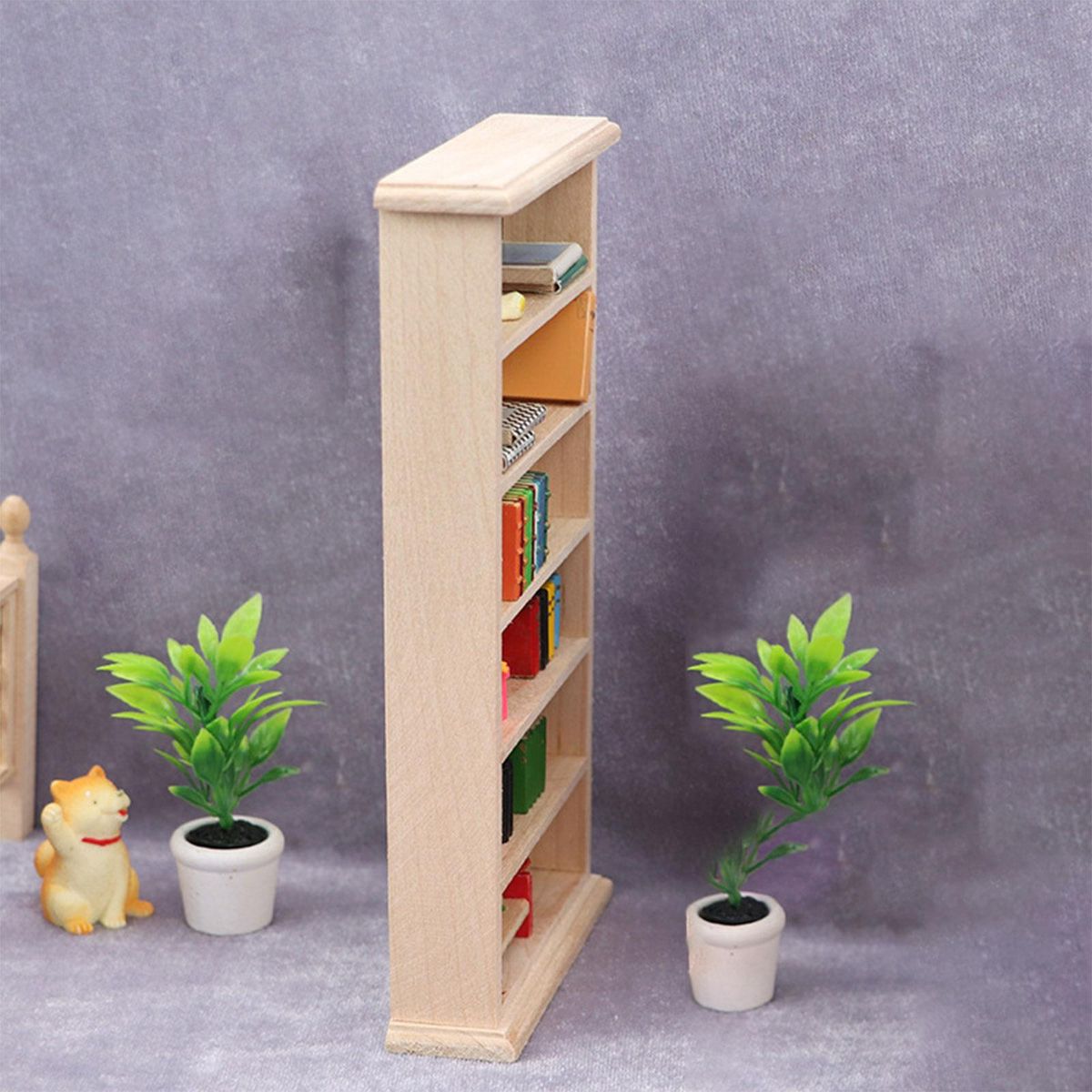 1/12 scale miniature 6-layer wood shelf display cabinet bookcase cupboard dollhouse furniture set.