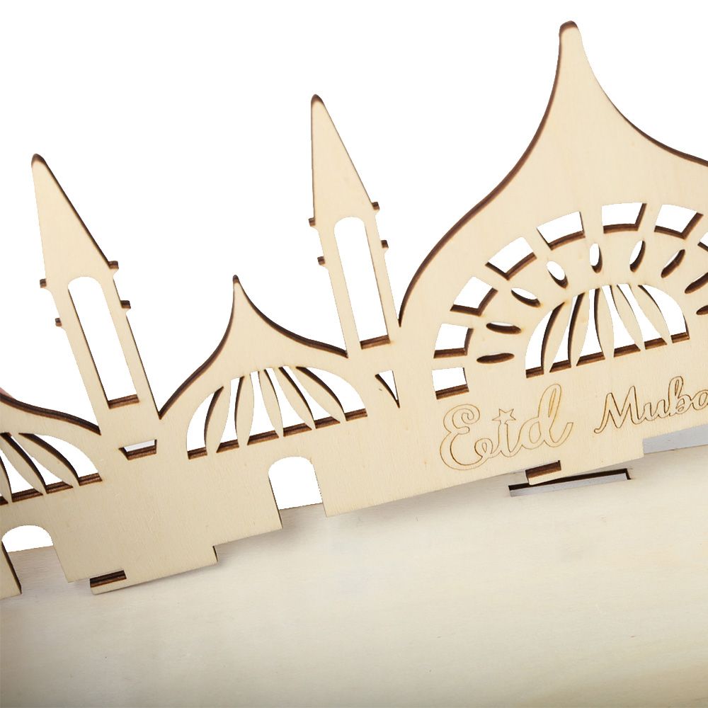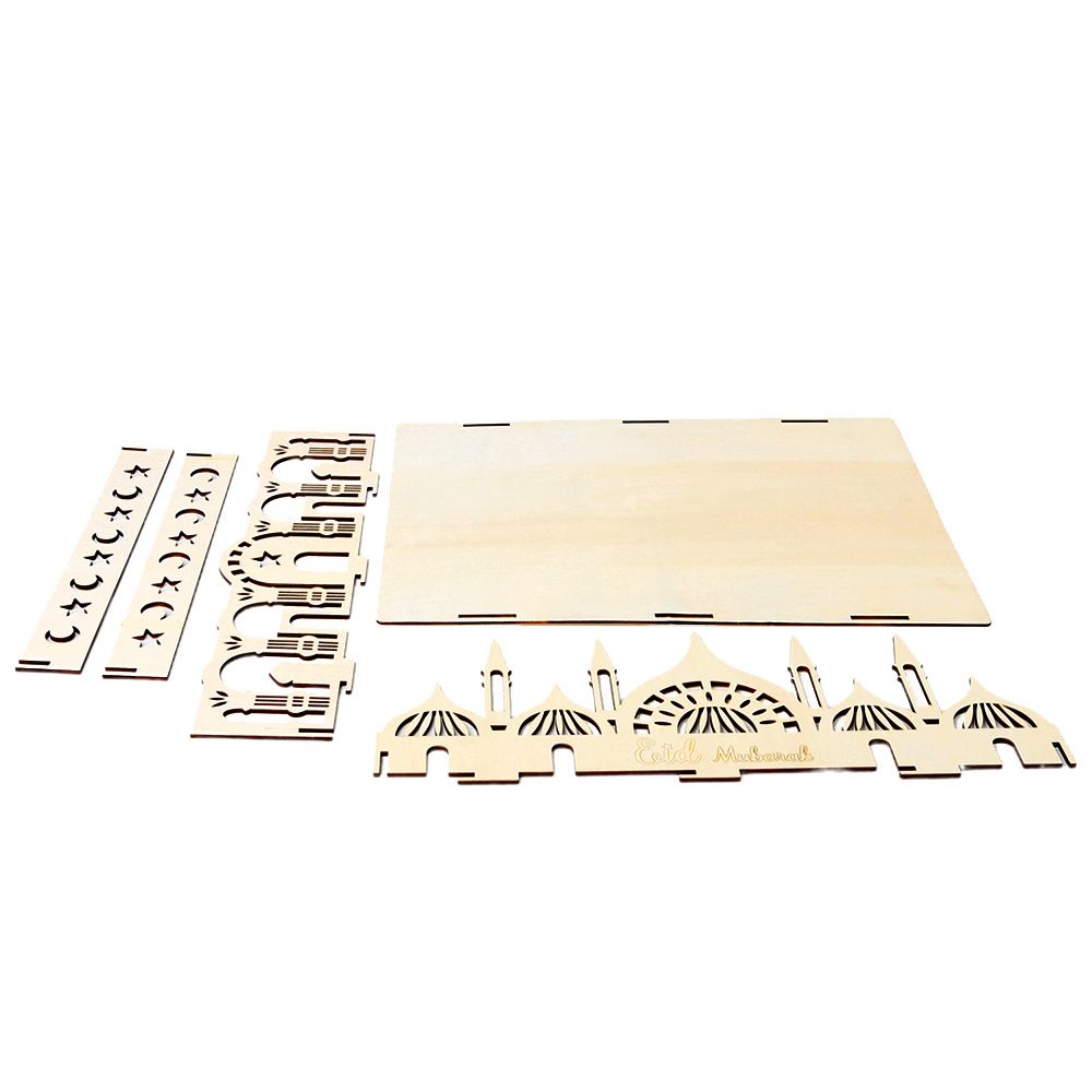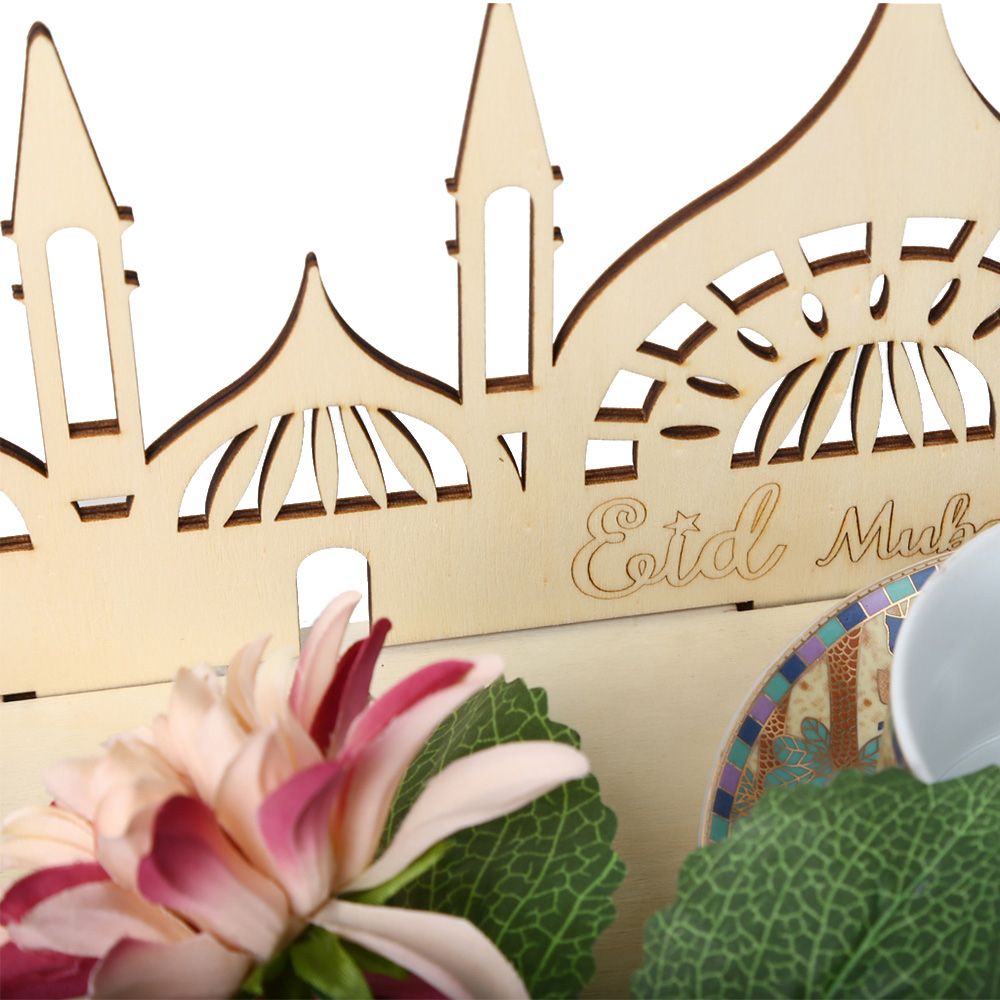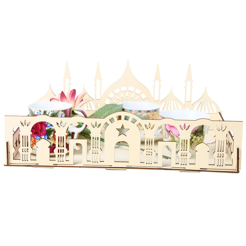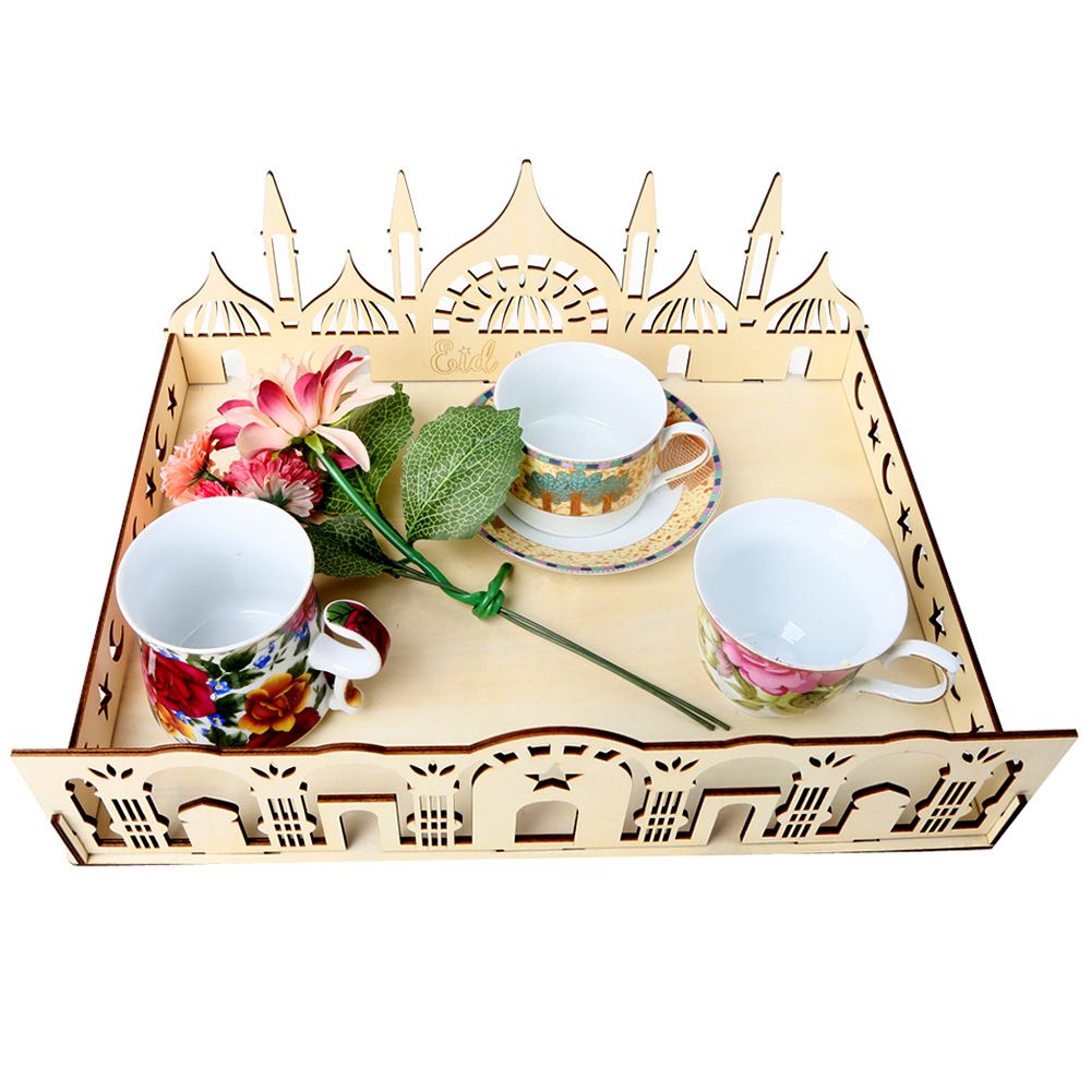 The wooden tray can put cakes, dates and other small treats at daily life or Eid. Celebrate Eid in style with the food serving tray.