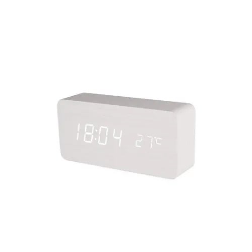Wooden Desk Clock can be the primary choice for your bedroom decor. Compared with plastic products, you can always see its inherent vitality and nobility. Your room deserve to have such a stylish and practical clock.Temperature and Humidity Display Clock is a good helper to create the most comfortable indoor environment for you, which is necessary for the health of each of us. So what reason do we have to reject it?Sound or touch control function allows you to keep up with the trend of smart home appliances. Once this function is turned on, the display will only be lit when you touch it or give it a sound volume greater than 60 decibels. That is to said, LED display only show up when you need it.Adapter (included) Plug in Powered with Backup Battery.From the perspective of energy saving and environmental protection, we recommend the first choice of adapter power supply, at the same, you can equip the clock with 4 AAA backup batteries to prevent it from working normally when the power is cut, so that your life rhythm will not be disturbed by the power cut.Three Settings Alarms with weekdays mode. Three settings of alarms can be set in one day to better WAKE you up, and the function of working only on weekdays can be turned on, which means the alarm clock will ring only on Monday to Friday. Of course, you can also set only one or two sets of alarms, or even turn off all alarms.Automatic or Manual Dimming Function. The LED display will automatically dim to 5% at 6 o'clock in the afternoon every day, and automatically brighten to 100% at 6 o'clock in the morning the next day. This is designed according to people's work and rest time. On the one hand, it avoids the strong night light from affecting our night rest, on the other hand, it is convenient for us and also plays a role in saving electricity.Three Level Adjustable Brightness allows you to adjust from low to high brightness, or even turn off the LED light and keep it sound sensitive. It & rsquo;s user friendly at night, which won & rsquo;t be too harsh for your eyes. Stylish appearance and multiple functions make it suitable as a gifts for kids.