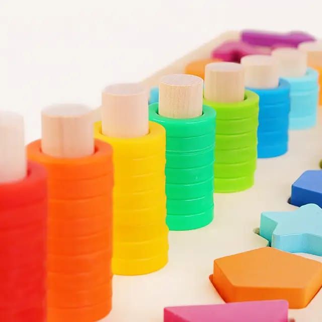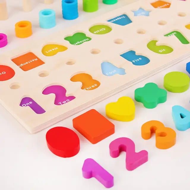 GREAT TOY: Wood blocks puzzle toy makes an interesting learning activity for kids. Colourful numbers, rings and cute fishes help your kids stimulate learning interest and enjoy playing with this toy.HELPS IN SKILL DEVELOPMENT: Designed to develop kid's intelligence, improve children's hand-eye coordination, creative ability, and logical combination.LEARN BY PLAYING: Kids can sort colours of rings, count the pieces, stack number blocks.