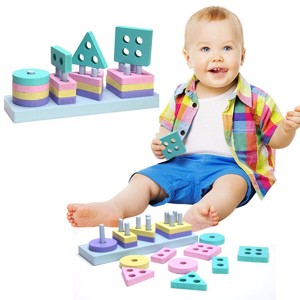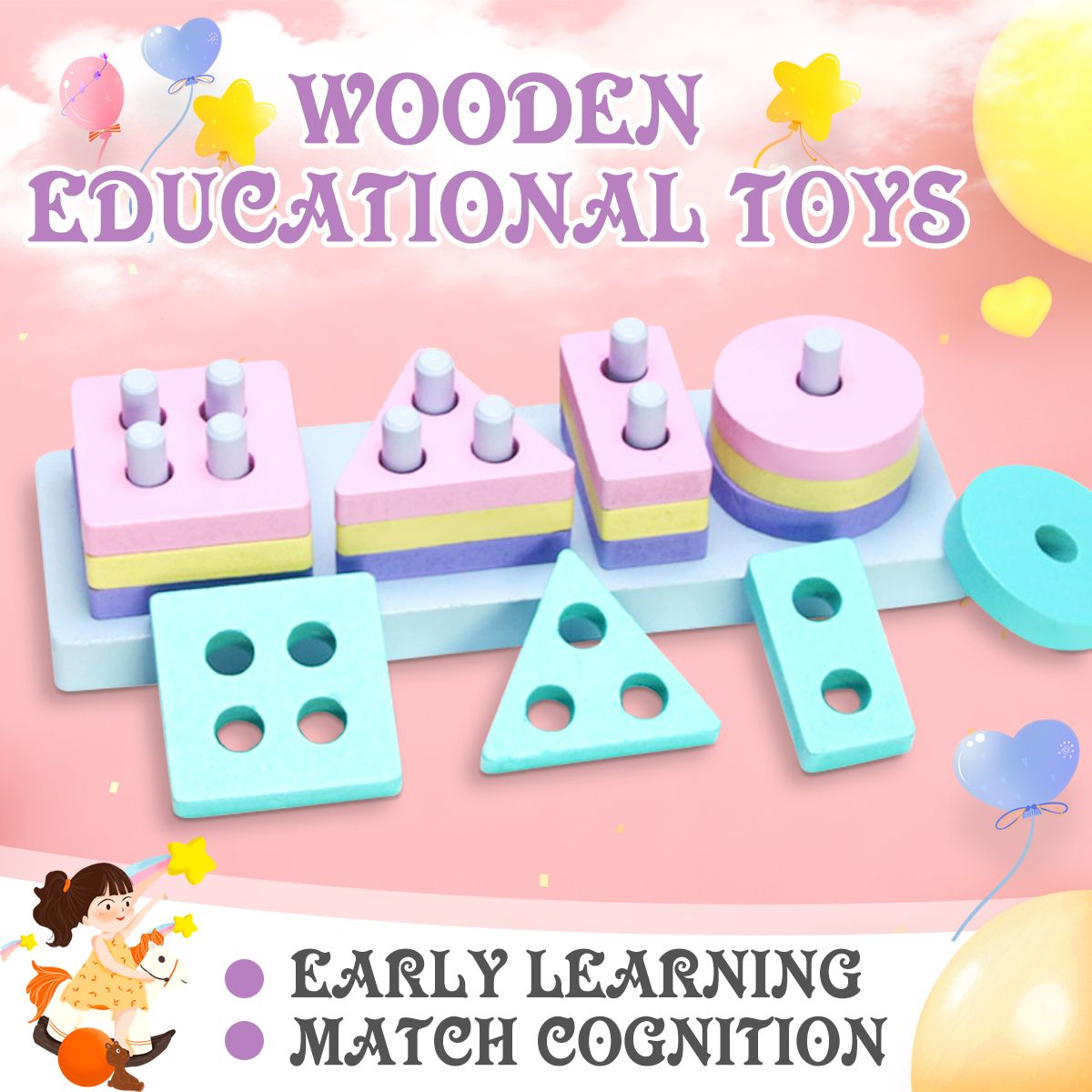 Wooden Building Blocks Early Learning Educational Toys Shape Match