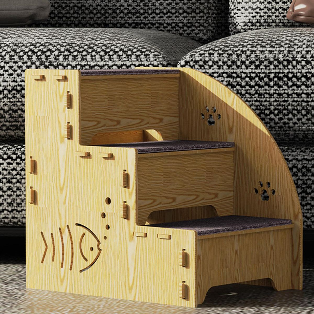 【NO MORE DIFFICULTY】: Pet stair is the perfect accessory for helping your little pup, or kitty reach that Tall bed, or couch, configuration to easily match your furniture's height.【DESIGNED FOR STABILITY】: Anti slip bottom and blanket makes these small dogs' stairs very sturdy and steady, pet steps give little friends great traction to climb and down.【PREMIUM AND RELIABLE】: The dog ramps are made of high quality wood and cloth, these pet steps are for small dogs, cats, and other small pets; ensuring maximum durability.【TAKE IT ANYWHERE】: Lightweight and detachable design of the portable pet steps allows you to easily move them from the room.【SIMPLE TO MAINTAIN】: The pet ramps and blanket can wash and are easy to clean with a rag.