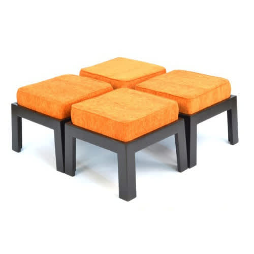 Buy Wooden Center Table or Coffee Table and 4 Stools - Coffee Brown with Orange Sofa in Nigeria