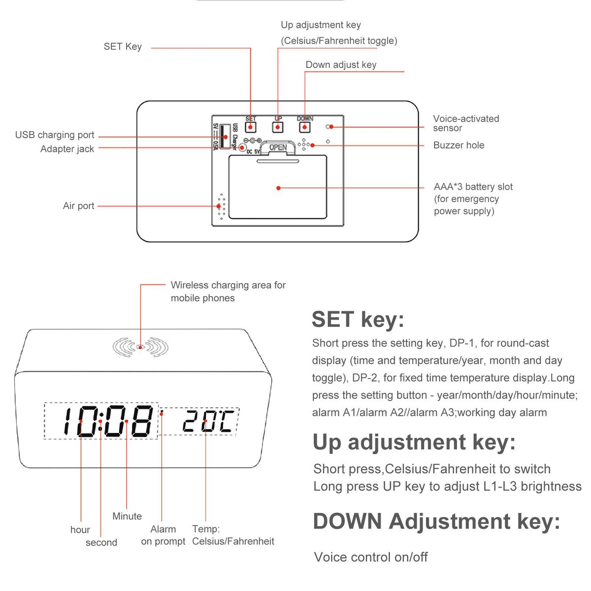 Buy Wooden Digital Alarm Clock with Wireless Charging 3 Alarms LED Display Sound Control for Bedroom Bedside Office Gift for Kids Friends in Nigeria