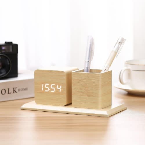 Buy Wooden Digital Clock With Pen Holder in Nigeria