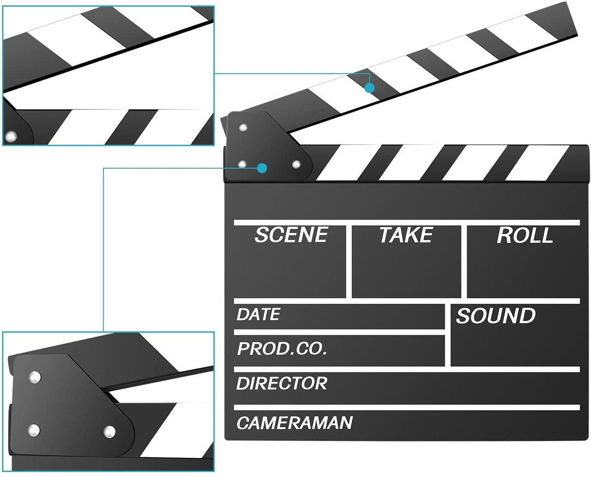 - Whether you're working on a home movie or would like one for decoration, this clapboard measured 12" x11" and completely wooden for easier writing and cleaning would be a good choice. Great to be used for film, TV series, studio live, advertising, video and other filming work.