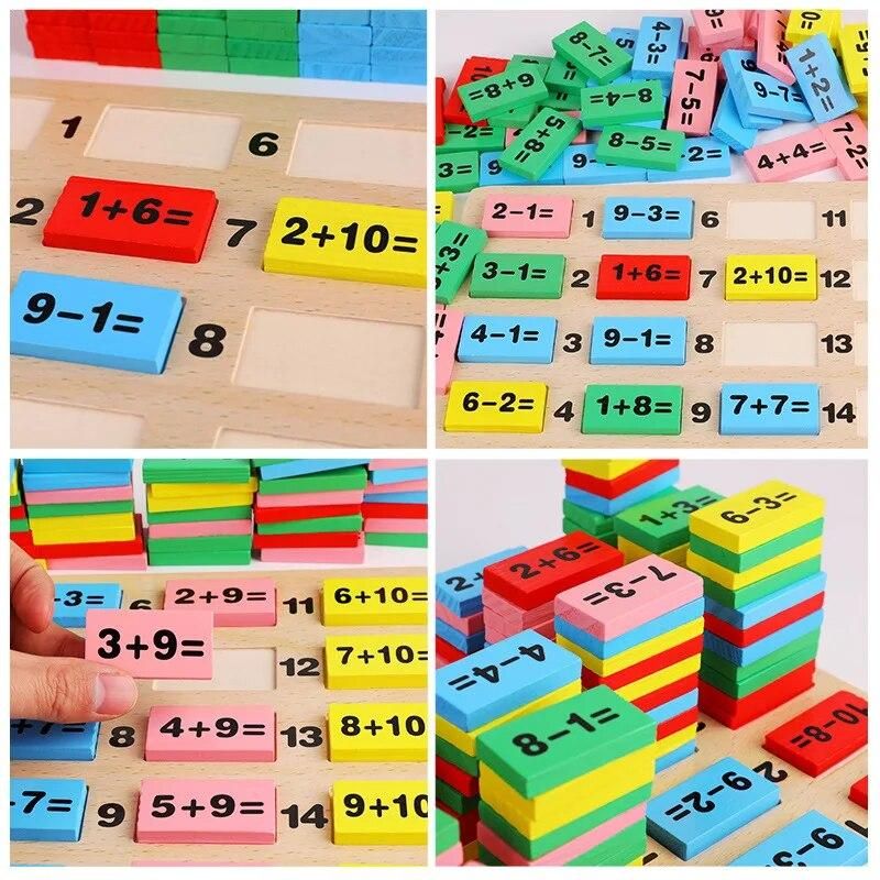 Buy Wooden Domino Blocks Math Toys Montessori Mathematical 110PCS Early Wooden Math Toys 3-4-5-6-7-8 Years Counting Game Funny Gift in Nigeria