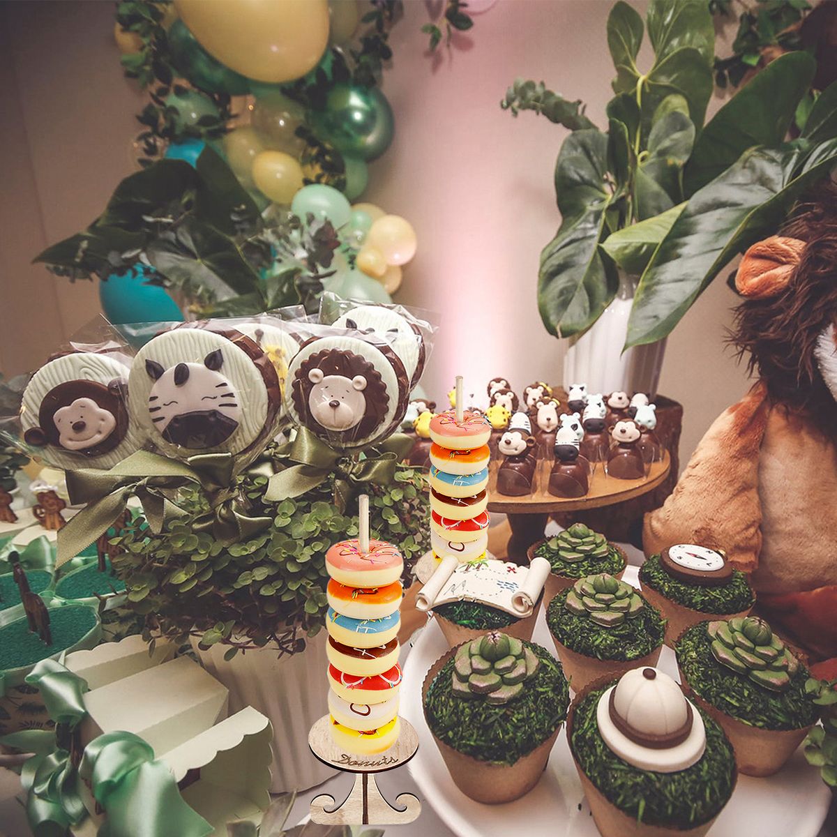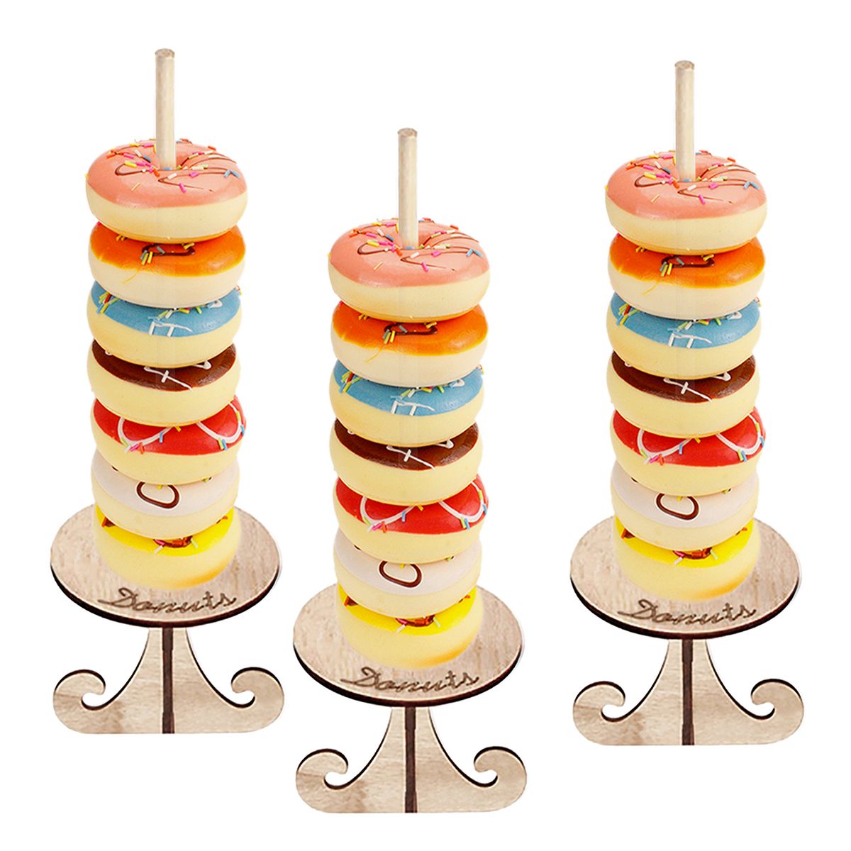 The wooden bracket is used to put donuts for display and decoration at wedding, party or birthday. It is easy to assemble and safe to use.