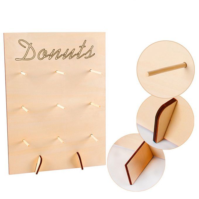 The wooden doughnut rack is hand-polished with plywood, smooth without hurting hands, sandal wood protects the eyes. Western style, suitable for weddings, parties and other occasions.