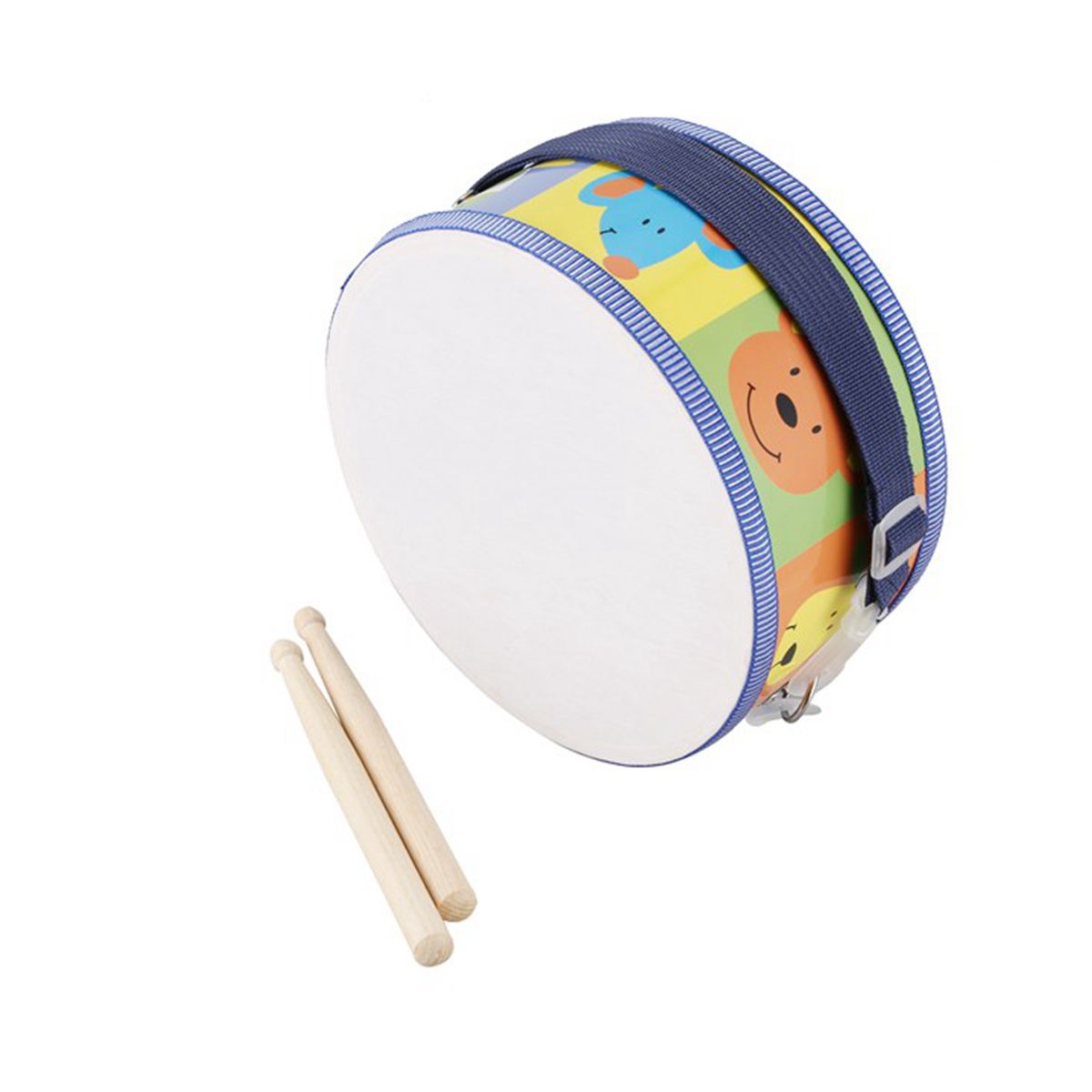 A fabulously colorful drum with pretty animal heads invites you to a cheerful musical in nursery! Music and pleasure all along ! Here, children can develop their motor skills, let off and spark their interest in music! Incl. Adjustable strap with two carabiners and two chopsticks (length: about 18cm).