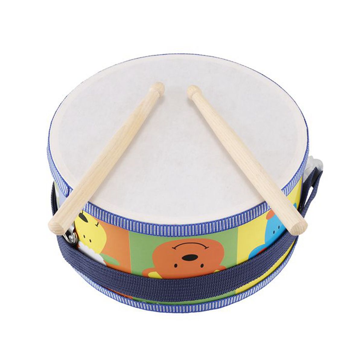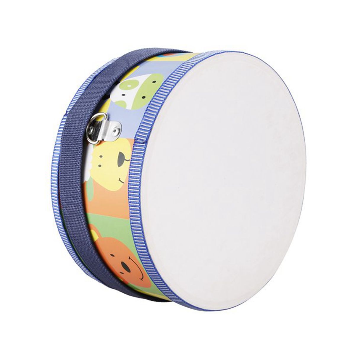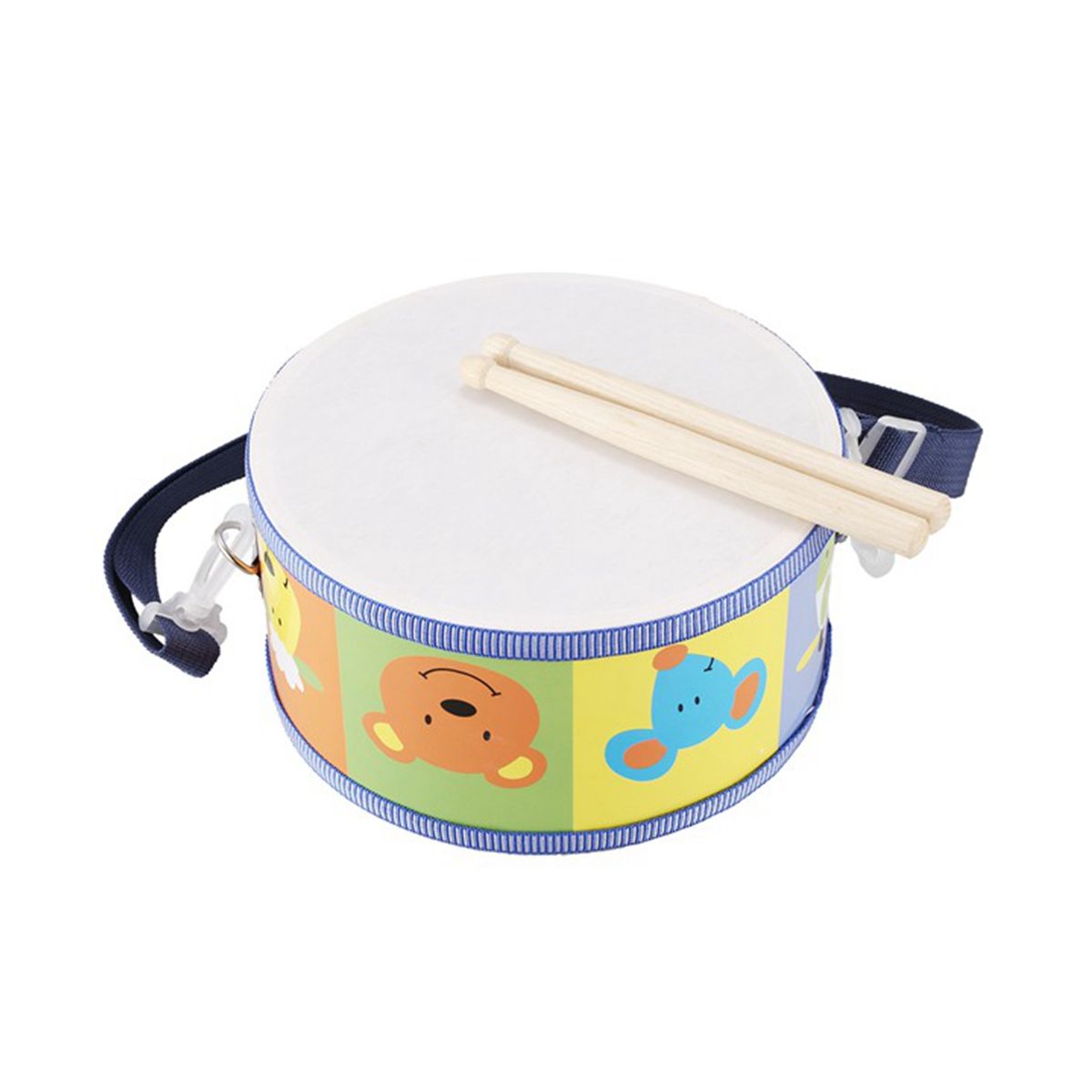A fabulously colorful drum with pretty animal heads invites you to a cheerful musical in nursery! Music and pleasure all along the line! Here, children can develop their motor skills, let off steam and spark their interest in music! Incl. Adjustable strap with two carabiners and two chopsticks (length: about 18cm).