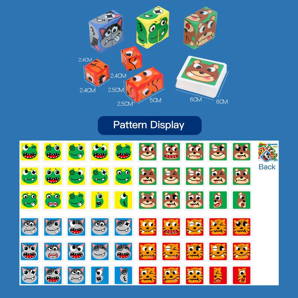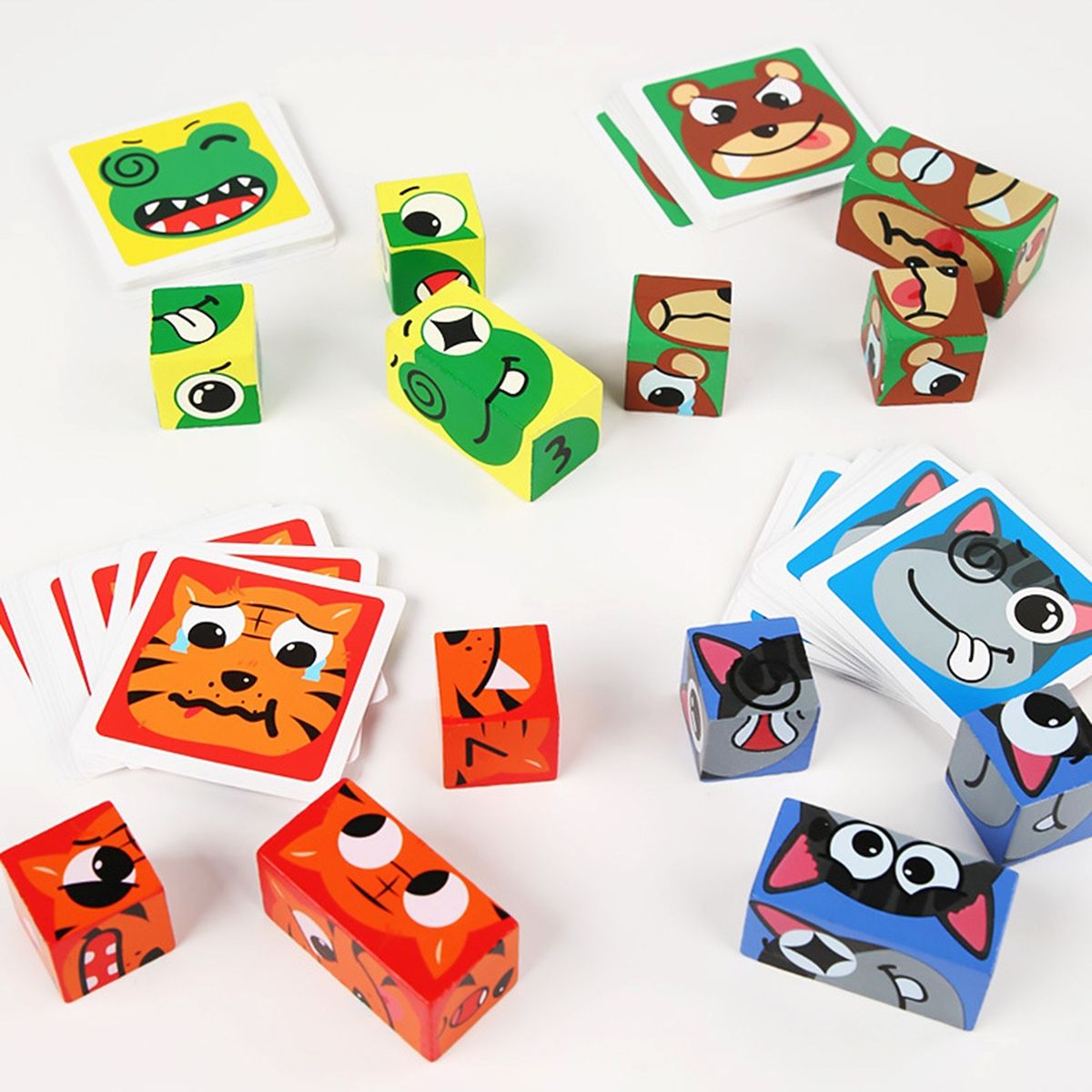 4 groups of building blocks, 3pcs for each group, quickly assemble the building blocks into the expression on the corresponding card, simple and fun.