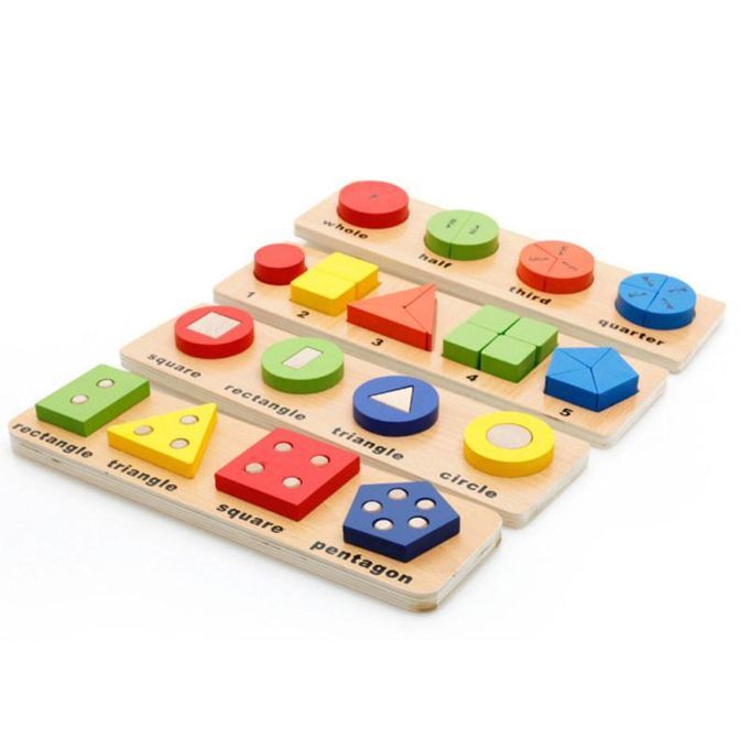 Colorful different geometric puzzles shape, can learn math fraction, shape stacking, etc.