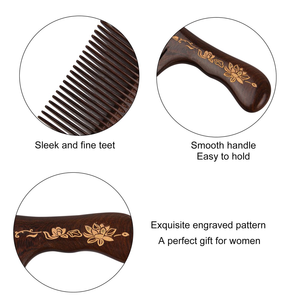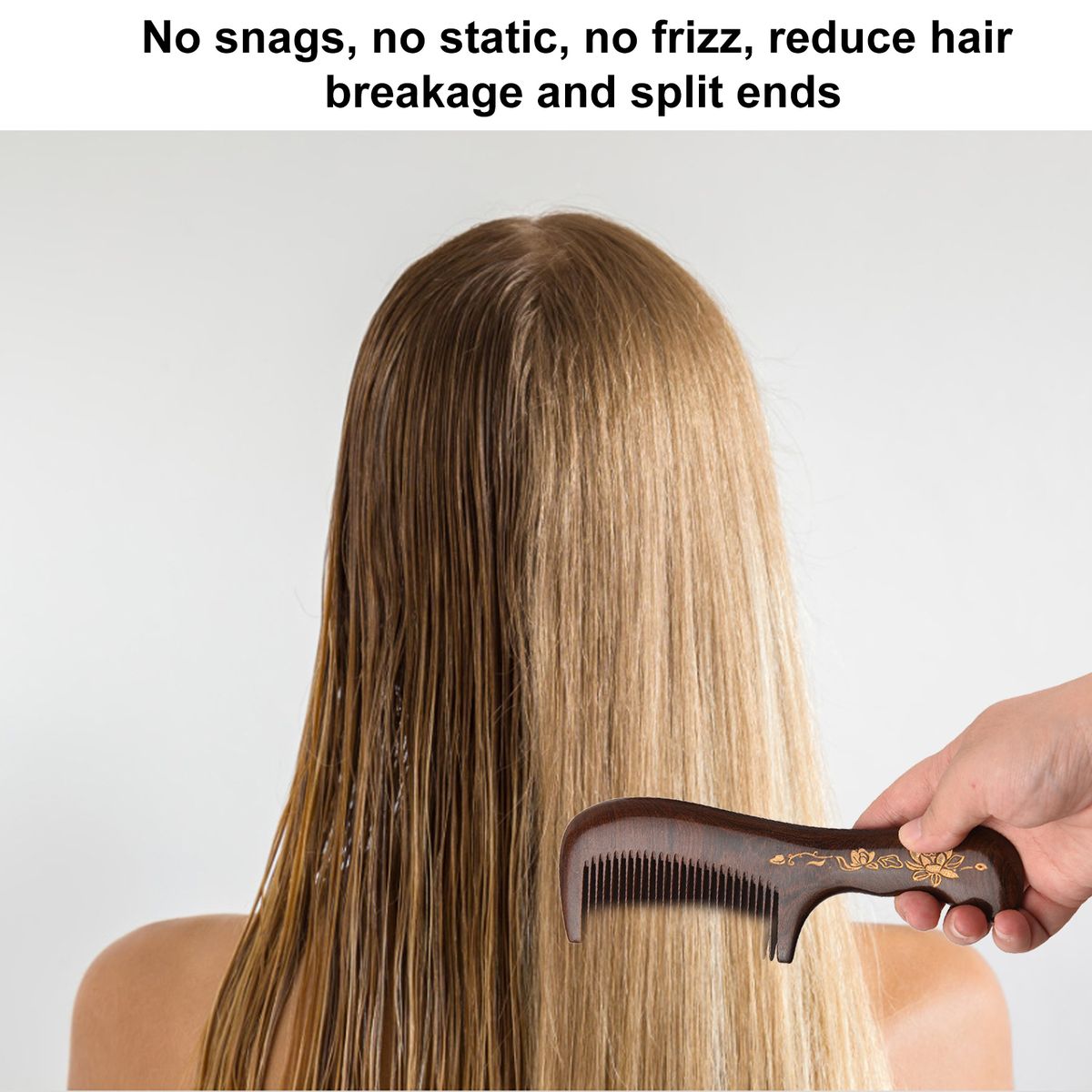 Natural sandalwood aroma and wooden fine teeth help to relieve tension, massage scalp and distributes oils, perfect for use with hair conditioners, oils and detanglers.