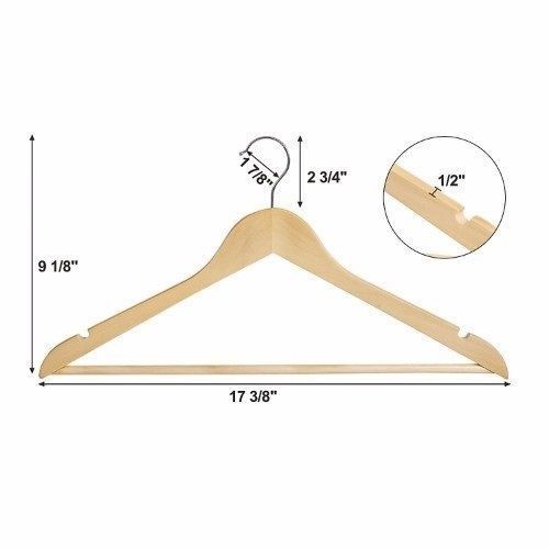 - Set of 40 natural wood suit hangers featuring anti-rust chrome 360 degree swivel hook.
