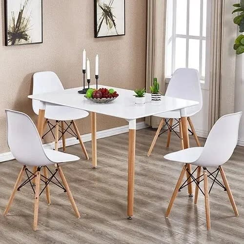 Buy Wooden Leg Dining Table With 4 Chairs-White in Nigeria