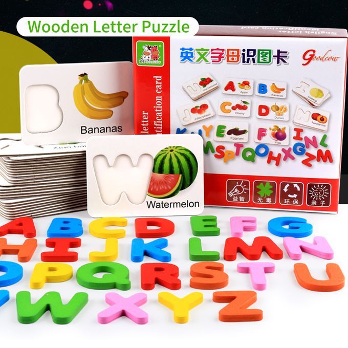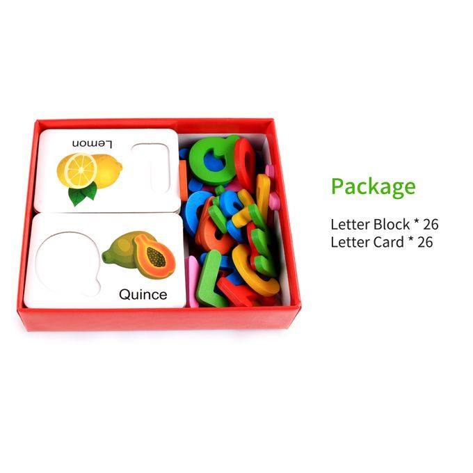 Wooden letter puzzle includes 26 letter cards and 26 letter blocks, a great helper for preschool education.