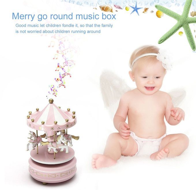 Description: Features: 4 Stunning Horses on a Classic Carnival Carousel. Rotate slowly upon windup with the music. Merry-Go-Round features exquisite hearts and sea stars. Standard size carousel music box for kids and girls. Ideal gift for for your kids or friends. Descriptions: These carousels make classical melody. Nice melody is perfect to make a nice atmosphere on parties or before sleeping. Perfect decoration for cafe, shop, book store, living room, wedding parties, etc. Specifications: Material: wood Size:19 x 11cm Color: pink/blue Package Includes: 1 x Music BoxNotes: 1.The real color of the item may be slightly different from the pictures shown on website caused by many factors such as brightness of your monitor and light brightness. 2.Please allow slight deviation for the measurement data.