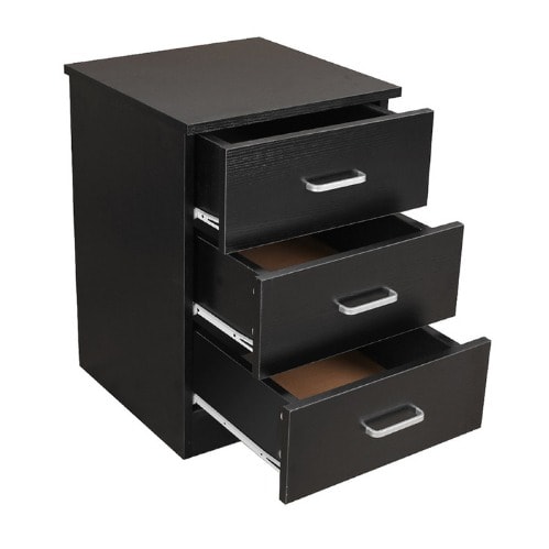 LOCKABLE FILE CABINET WITH AMPLE STORAGE The locking mechanism of the filing cabinet secures all 3 drawers that run smoothly to keep your documents and belongings safe. The 3 drawer design provides ample space for office documents, letters, books, magazines and files.Durable Filing Cabinet This vertical filing cabinet is made of high quality wood, durable and scratch resistant, easy to clean with a damp cloth or rag. The drawers can be pulled out silently thanks to high-quality sliding rails.