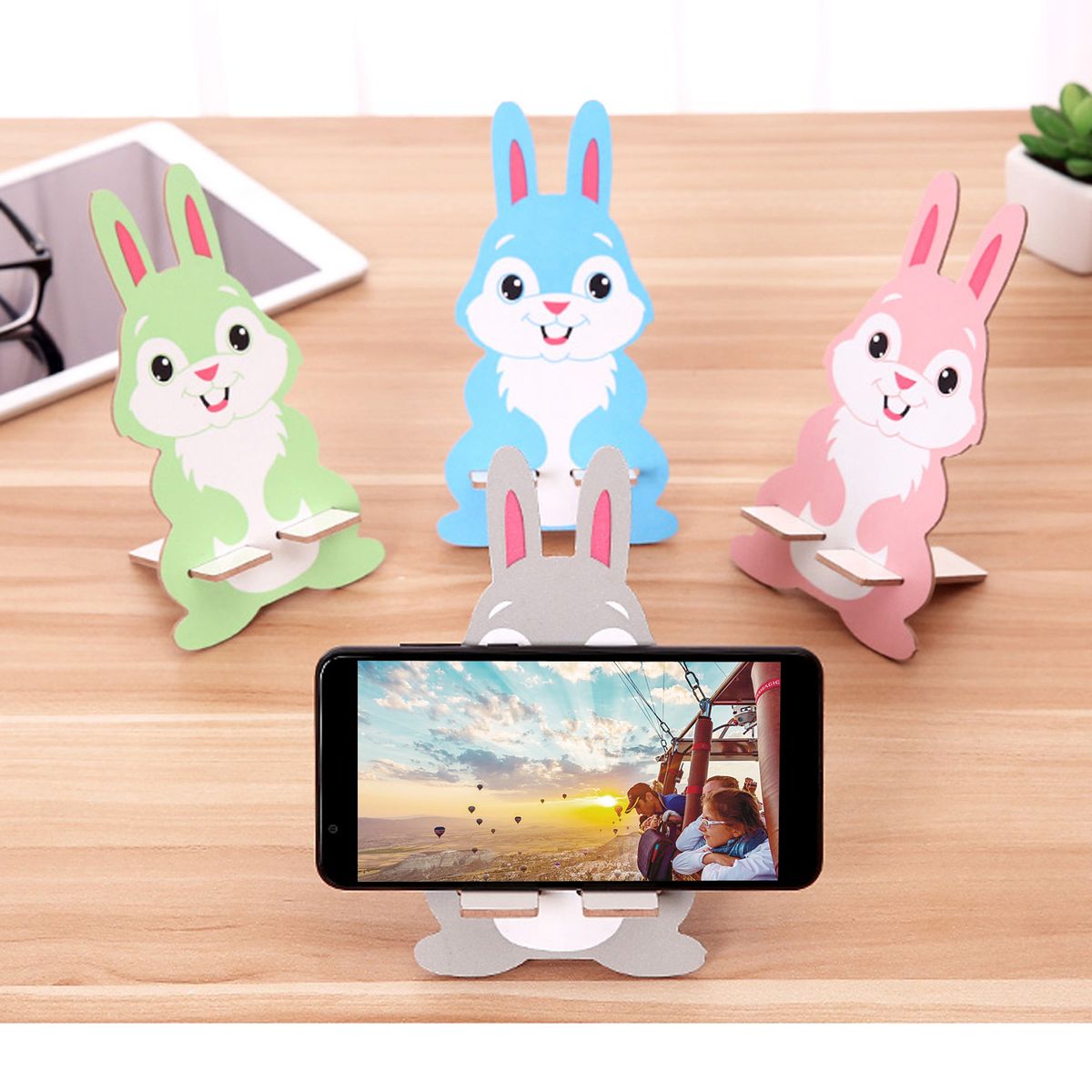 Features:Cute mobile phone holder, wooden.