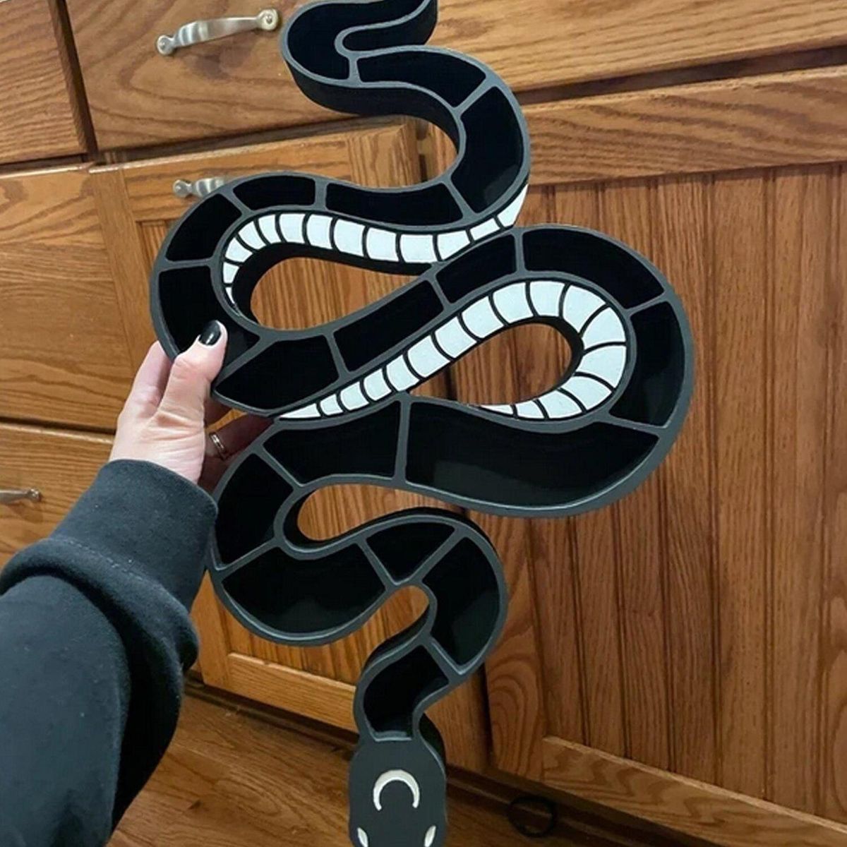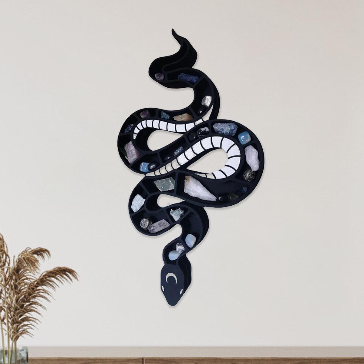 With a creative snake shape, this wooden stand not only holds special items such as healing crystals and essential oils,, rocks, gothic witch hippie spirits, or any other gothic and zen decor, but can also be used as a living room wall decor.