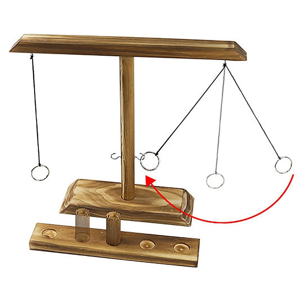 Toss the ring to hook, then move the wood step towards your opponent. The first party to reach the end wins.
